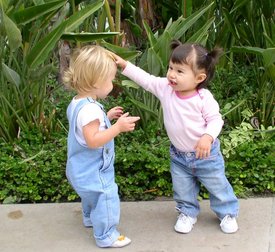 I discovered something very profound about my daughter while watching her with Vivian. She acts JUST LIKE ME. She, like myself, has this obsessive need to hug and touch people.