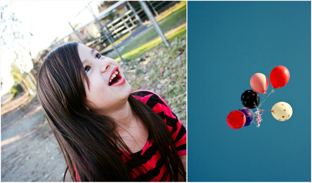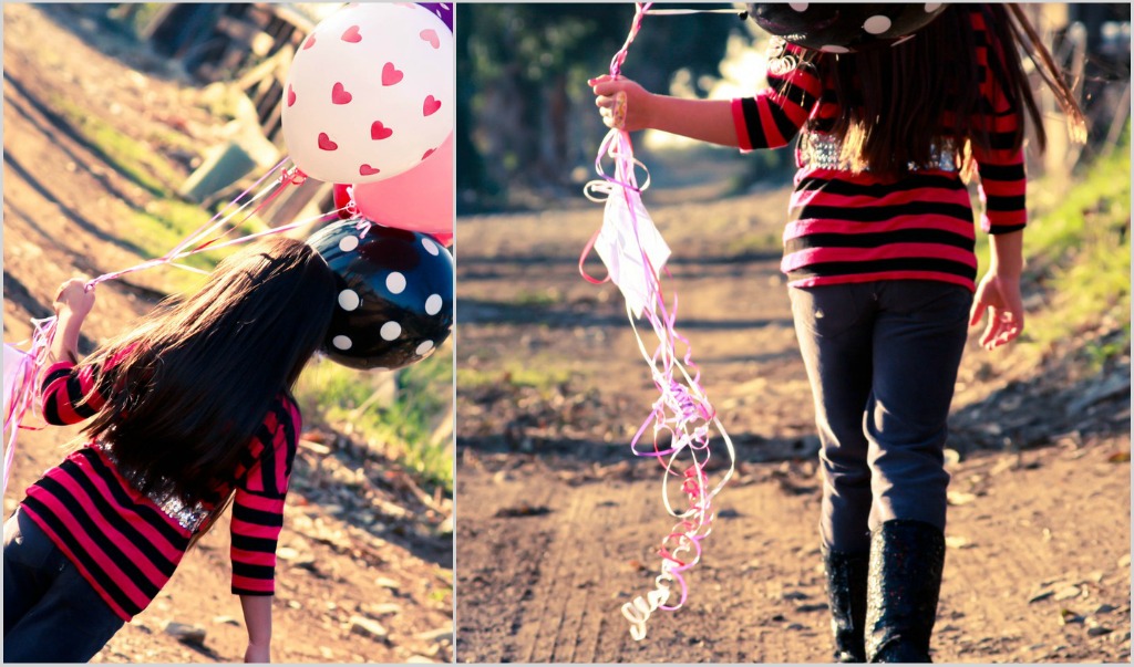 I knelt down to hug her as we watched the balloons float away. She held onto me as we watched. As we walked away, we both kept our eyes glued to the sky. I held her hand and we walked slowly back home.