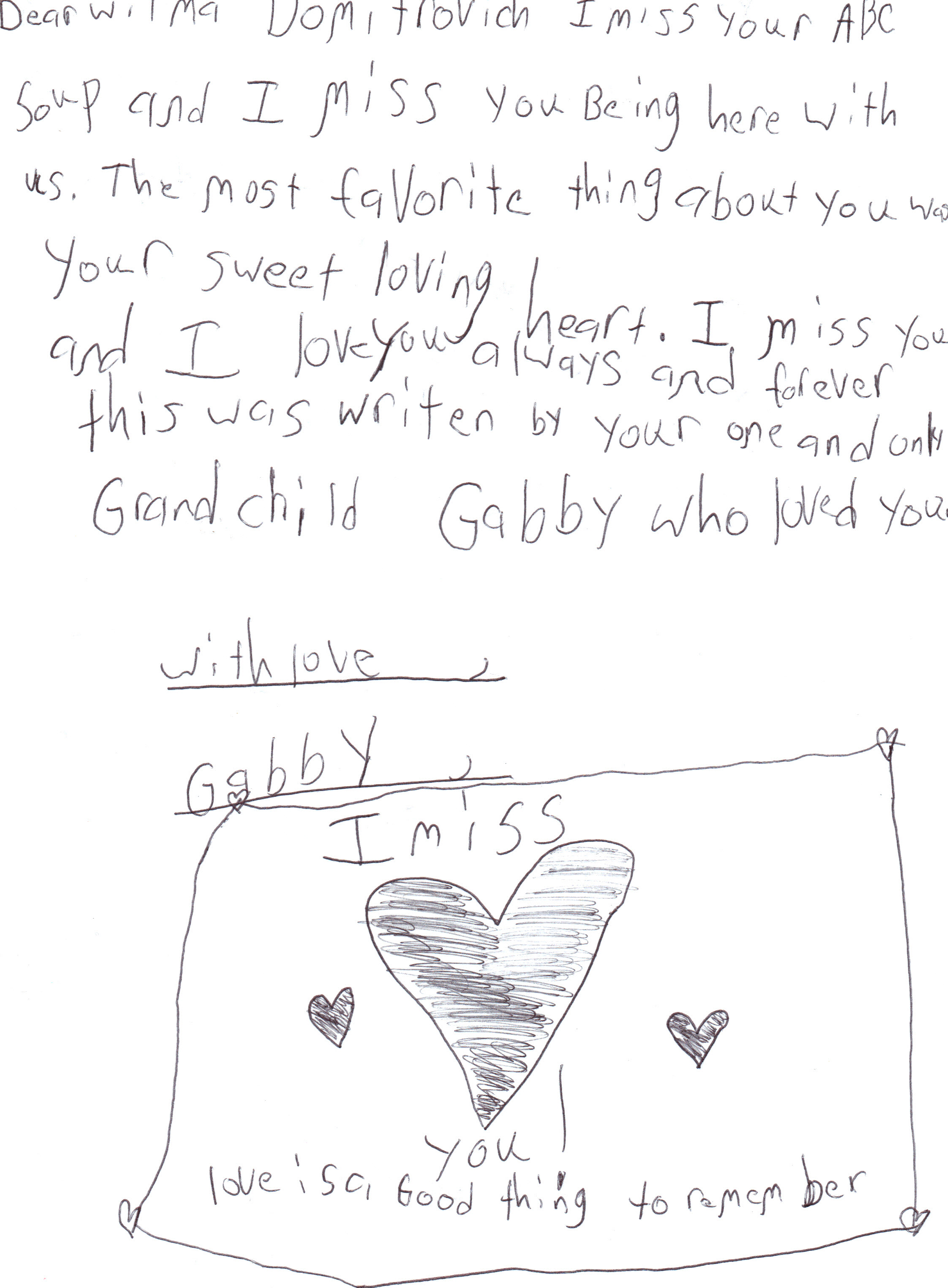 What a smart, lovely daughter you have! I lost my favorite Grandmother (Nanny) last year and I’m still having trouble letting go… Maybe I should try Gabby’s way…