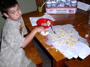 Being the wonderful mother I am, I started laughing, I mean, IT WAS THE MIDDLE FINGER, PEOPLE! But he started crying (and he never cries, he’s 12!) and screaming “It’s not funny! My finger is stuck! HELP ME!” I’ll admit, it took everything in me to a)not continue to laugh b)not run and get my camera c)not yell at him “THAT’S WHAT YOU GET FOR NOT OBEYING ME!”